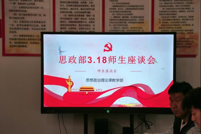 为进一步认真贯彻落实习近平总书记关于思政课建设的重要论述,推进世界杯官网思政课高质量发展,4月7日,思政部组织召开“重温习近平总书记‘3·18’重要讲话精神”师生座谈会。会议由思政部主任赵雪照主持,思政部班子成员、教师代表、学生代表参加会议。