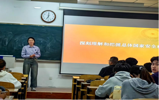 三是面向师生讲授专题课。3月25日,思政继教直属党支部书记张明花,在综合楼407开展了主题为《深刻理解和把握总体国家安全观》的主题课,来自全校十个教学系部的70余名学生参与了讲座。