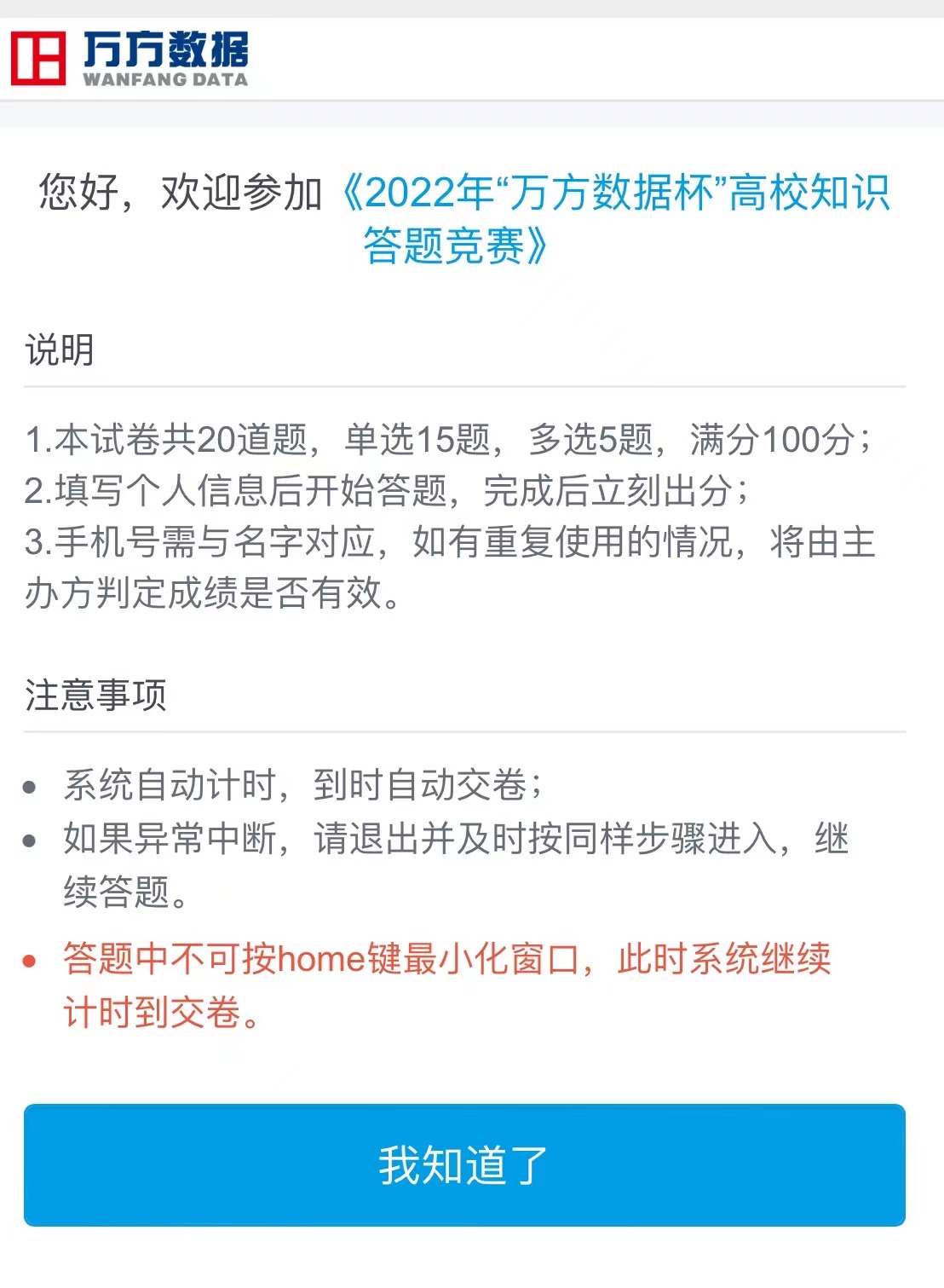 采用线上答题的方式,设置共100道的高校读书检索题库,涵盖与论文写作、信息检索、知识产品相关的题目,答题时,由题库随机抽取20道题组成试卷,答题完成后系统自动判卷,活动结束后将根据答题成绩(成绩相同则按答题时间排名)评奖。