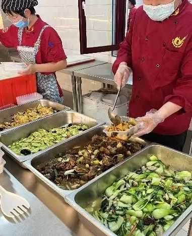 在日常工作方面:因为疫情餐厅工作人员有部分无法到岗,在人员不足的情况下,不仅要保障大家的饮食生活,还要配合食材进校的消杀、搬运工作,为了保障师生封闭期间吃得上吃得好,白天延长就餐时间,晚上加班加点储备食材。自学校封闭管理以来,餐厅全体工作人员日日夜夜,争分夺秒,齐心协力,全力以赴,每天为教职工及学生提供了丰富、新鲜、健康的饮食,确保广大师生食品安全健康。餐厅工作人员缔造的美食似乎有种神奇的力量,不仅可以让我们得到味蕾的满足,还能安抚我们的心灵。