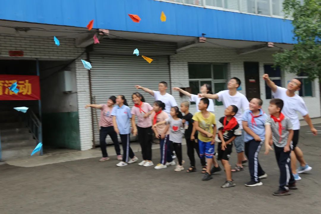 在这个属于奋斗者的新时代,梦想是孩子们心灵深处的渴望。每一个孩子都有追梦的权利,每一个孩子都是梦想的筑造者,课堂上,实践队队员让孩子们把梦想写到彩纸上,折成纸飞机,在室外放飞纸飞机,追逐梦想。海阔天空,勇于开拓,唯有追梦的脚步永不停歇,才会使自己的人生变得更加绚丽多彩。
