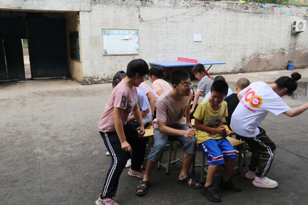 室外趣味活动课上,黄家沟小学的孩子们个个活力四射、积极向上,以饱满的热情和积极的态度投入到游戏互动中。实践队队员们发挥自身优势,将阳光体育落在实处,利用体育运动增强孩子们的活力和专注力,激发潜能、开发智力,塑造“坚毅、友爱、团结、互助”的品德修养。丢沙包、踢毽子、“抢板凳”,实践队队员们童心未泯,寓教于乐,孩子们欢声笑语,沉浸其中。实践队队员们和孩子们在游戏中锻炼,在锻炼中快乐,在快乐中成长。