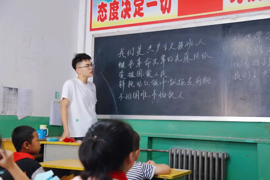 按照国家“童语同音”行动方案的要求,实践队队员在湍水头镇寄宿制小学、上南沟小学、黄家沟小学等地以当地小学生为对象开展党史故事讲述、红色歌曲传唱等活动,纠正小学生吐字发音,有效进行普通话练习的同时,开展了生动有趣的党史学习教育宣讲,引导他们感悟红色文化,感党恩、听党话、跟党走。