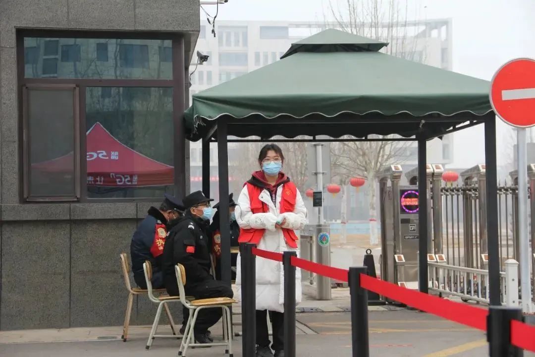 寒风凛冽中有志愿者们在校门口迎接归校心切的学子,积极引导学生进入校园,给寒假归来的山能学子送上了一缕温暖。