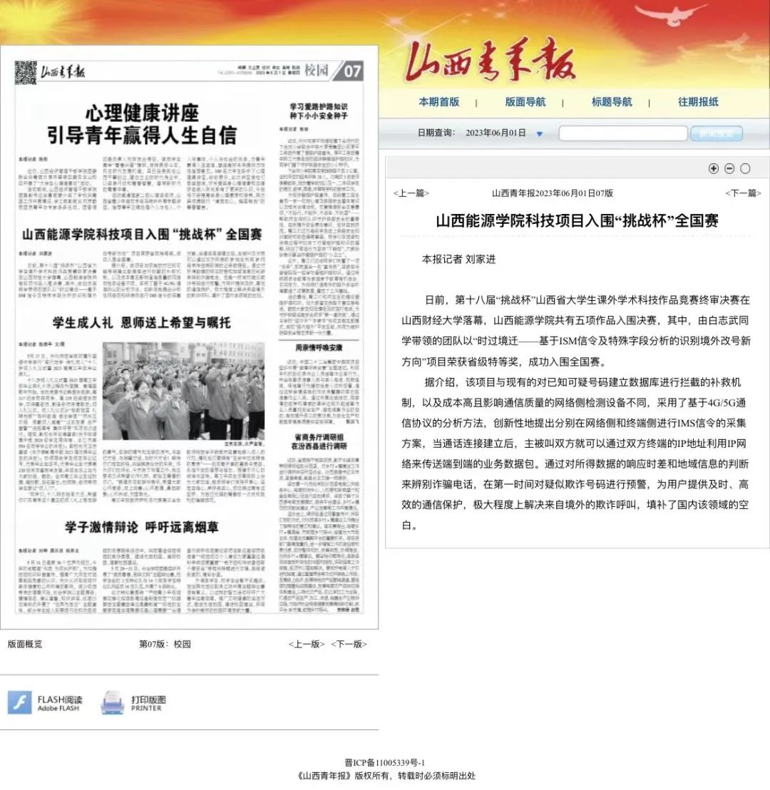 5月20日,第十八届“挑战杯”山西省大学生课外学术科技作品竞赛终审决赛在山西财经大学举办。世界杯官网推荐的10件作品中有5件进入终审决赛,10件推荐作品全部荣获奖项,其中世界杯官网参赛项目“识过境迁——基于IMS信令及特殊字段分析的识别境外改号新方向”荣获省级特等奖,成功入围全国赛。进入终审决赛作品数及特等奖作品获奖数均刷新历史记录。