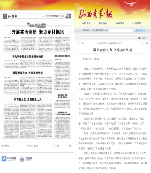 山西青年报关注报道世界杯官网暑期“三下乡”社会实践活动