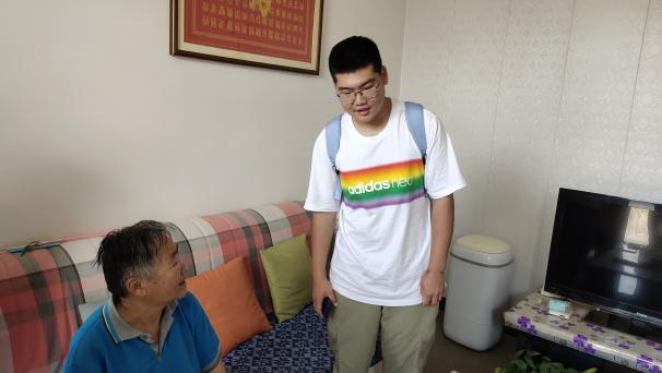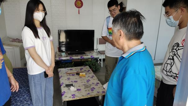 黄寨村位于插花贫困县阳曲县黄寨镇,当地积极响应扶贫号召,发展民俗、特产等产业,是乡村振兴的典范。在当地人民的介绍下,实践队来到一户贫困户家中,队员们为老人带来了面粉、面包等生活必需品,陪老人聊天,为当地村民送上温暖。