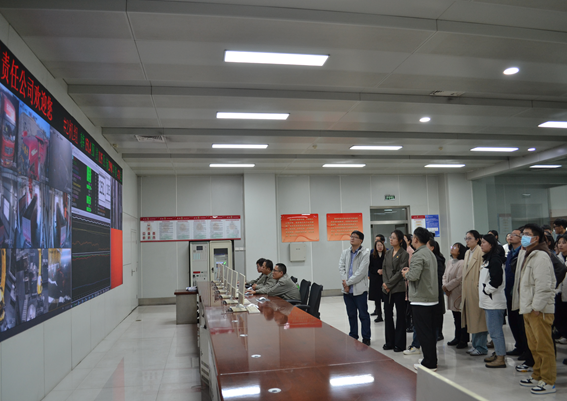 在展览大厅全体师生党员重温了习近平总书记历次考察调研山西重要指示精神,切身理解和感受了总书记对山西能源革命综合改革重大使命的殷切嘱托,切实感受到习近平新时代中国特色社会主义思想展现出的强大真理力量和实践力量。来到生产集中控制室,首先映入眼帘的是整墙的电子屏幕,上面的每一个数字,都是瑞光热电数智化高质量发展的“密码”。在这里运营着两台30万千瓦热电联产机组,为太原、晋中两市及太原武宿机场供热约2400万平方米,是省内同类机组单位千瓦容量供热面积最大的电厂,源源不断地将温暖送进千家万户。