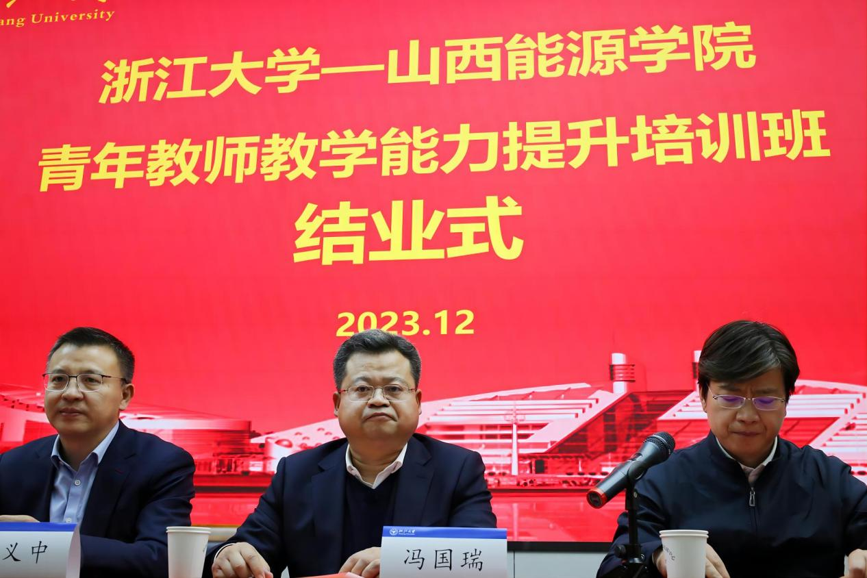 冯国瑞院长在讲话中,寄语青年教师一要讲感谢更讲感情,感谢浙江大学提供高质量学习平台,感谢为此次培训付出辛勤工作、克服各种困难的广大青年教师;二要重过程更重效果,把培训期间所见、所闻、所学、所想带回去,并真正付诸于教学实践中去;三要重人才培养更重为人师表,青年教师要陶冶言为士则、行为世范的道德情操,勤修乐教爱生、甘于奉献的仁爱之心,用大爱书写教育人生;四要重眼界开阔更重理念提升,逐步探索出一些结合学校实际、学生特点、自身特色的教学方法与教学规律;五要重知识拓展更重方法获得,在发现、思考和解决问题的过程中保持吸纳革新的态度、树立终身学习的理念;六要看今朝更待明日,青年教师既是学校教育的中坚力量,也是学校事业发展的宝贵财富,更是学校可持续发展的生力军,要把思想和学习所得统一到学校本科教学工作合格评估的重点工作中去。