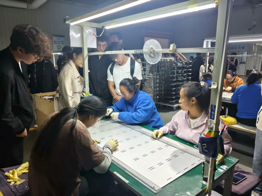 实习期间,学生们深入企业生产线,全面了解碲化镉薄膜太阳能电池组件的生产工艺流程。在企业技术人员的指导下,学员们先后参与了原料制备、薄膜沉积、组件封装等关键工序的实践操作,亲身感受了从材料到产品的完整制造过程,在真实生产场景中建立了对新能源材料行业的立体认知,避免了职业选择的盲从性。