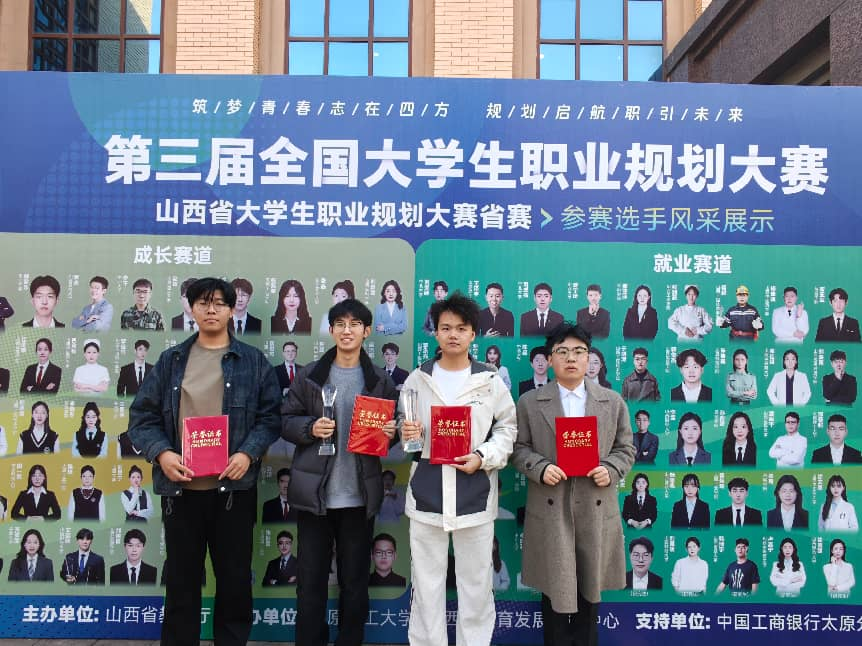 3月20日,第三届全国大学生职业规划大赛山西省赛决赛在太原理工大学明向校区圆满落幕。本次大赛汇聚了全省高校优秀学子,180名晋级省决赛的选手同台竞技、激烈角逐。世界杯官网4名入围选手立足专业特色、精准锚定职业定位,凭借扎实的专业素养、清晰的职业规划和出色的现场表现脱颖而出,斩获银奖1项、铜奖3项,全面展现了世界杯官网学子过硬的综合素养与昂扬向上的精神风貌。实现了世界杯官网在该项赛事上的新突破。