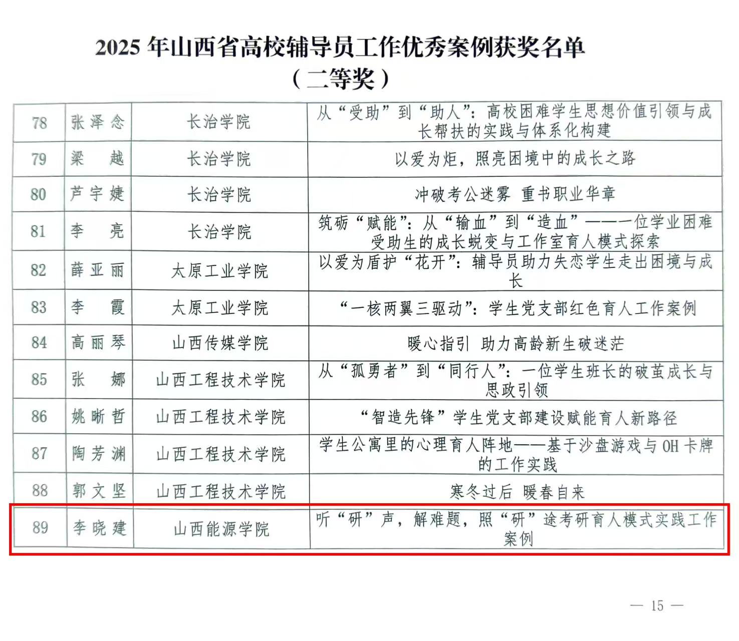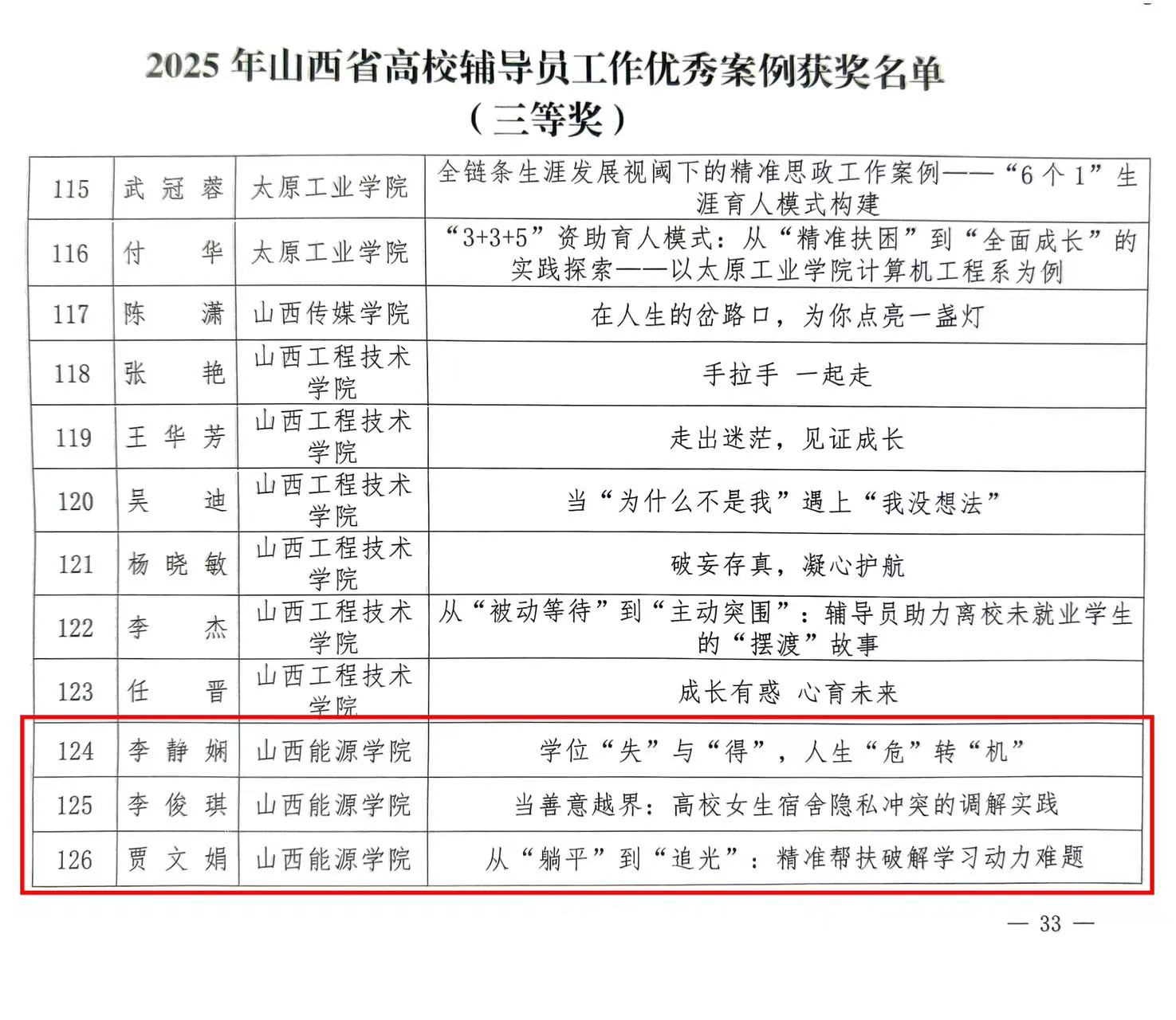 近期,山西省教育厅印发《关于公布2025年高校辅导员工作优秀案例评选结果的通知》(晋教政函〔2025〕57号),世界杯官网辅导员队伍表现突出,共荣获省级二等奖1 项、三等奖3项,为世界杯官网辅导员队伍建设再添新绩!