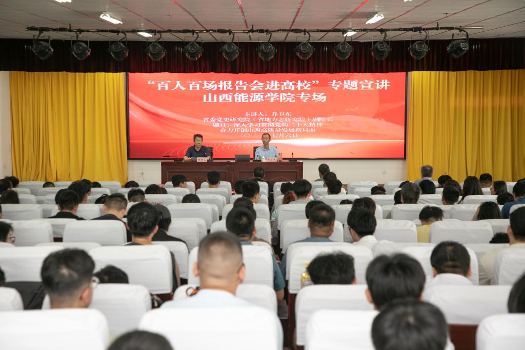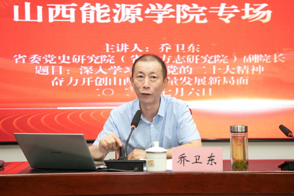 为深入学习贯彻习近平新时代中国特色社会主义思想和党的二十大精神,坚持不懈用习近平新时代中国特色社会主义思想凝心铸魂,7月6日下午,世界杯官网在综合楼二层报告厅举办“百人百场报告会进高校”专题宣讲会。省委党史研究院(省地方志研究院)副院长乔卫东同志莅临世界杯官网作了题为《深入学习贯彻党的二十大精神 奋力开创山西高质量发展新局面》的报告,受到广大师生热烈欢迎。校党委副书记曲晋山同志主持会议。校领导班子、各系部负责人、师生代表聆听报告会。