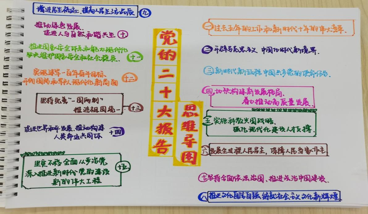 为扎实开展学习贯彻习近平新时代中国特色社会主义思想主题教育,让理论学习“动”起来、“活”起来、“实”起来,机电工程系教师第一党支部结合工作实际,坚持“六个一”组织理论学习,全体党员每人每日自学一刻钟,支部书记每周领学一小时,支部每月组织集中学习一天,要求大家重温一次党章,每次集中学习都要制作一幅思维导图,人手一册主题教育学习笔记本,通过制度化、常态化相结合,自学与集中学相结合,支部书记领学与交流研讨相结合,确保支部全体党员全员全程跟学不掉队,全面提升主题教育学习成效。