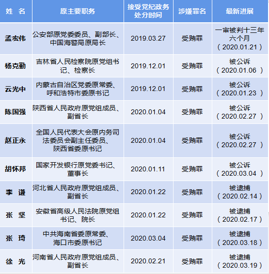 今年以来司法机关通报的“老虎”名单(依据移送司法时间先后排序)